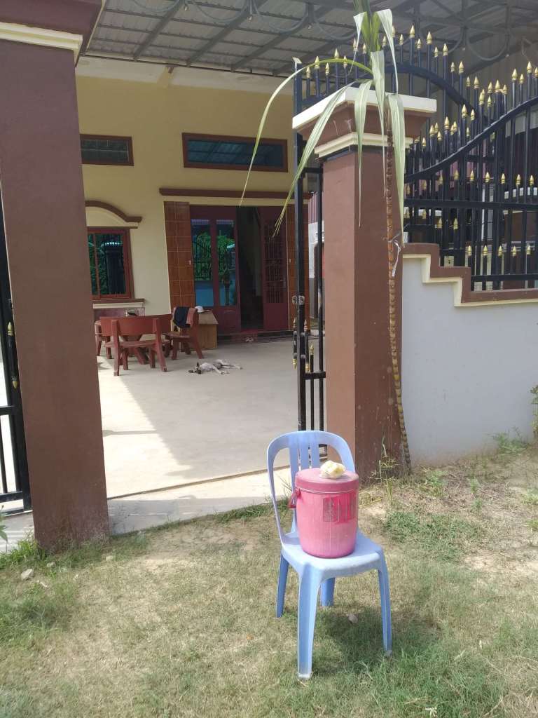 Doordat we een hele Suikerriet stengel als uithangbord gebruiken, en één zakje bovenop de koelbox plaatsen, is het helder wat we willen verkopen……als dan de “Farang” ook nog als verkoper optreedt is het geheel aantrekkelijk genoeg om omzet te maken….